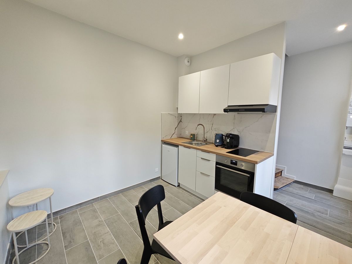 Maison de ville type 2 bis entièrement rénovée sur deux niveaux, cuisine avec espace repas et wc au rez-de-chaussée, salon avec espace bureau et mezzanine aménagée en coin nuit, salle d'eau à l'étage, climatisation réversible, sur cour, au calme, pas de mitoyenneté, toutes commodités en sortant de l'immeuble, disponible, provision sur charges 50 Euros (régularisation annuelle), dépôt de garantie 1260 Euros, honoraires location charge locataire 240 Euros TTC (visite, dossier, bail), honoraires état des lieux charge locataire 71 Euros TTC.